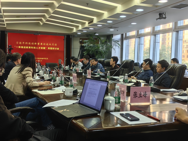 习近平总书记在党的二十届四中全会上作出了“一体推进教育科技人才发展”的战略部署。为学习贯彻习近平总书记重要讲话精神和党的二十届四中全会精神,深入推进习近平总书记关于科技创新的重要论述研究,战略院于11月18日组织召开2025年第6期习近平科技创新重要论述双月谈活动,邀请来自中国教育科学研究院、中国人事科学研究院、中国科学院大学、浙江大学、北京教育科学研究院以及中国移动、华为公司的多位专家学者,以“一体推进教育科技人才发展”为主题展开研讨。战略院党委书记刘冬梅主持会议,战略院副院长冯楚建、邵学清,科技部相关司局人员、战略院以及部系统多家单位的研究人员参加会议。