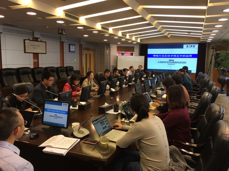 2018年3月28日,受科技预测与评价研究所的邀请,上海科技情报学会秘书长、国家知识产权专家肖沪卫研究员来访我院,作了“技术预见中的情报方法应用”的报告,会议针对客观分析方法在国家科技预见中的应用问题进行了全面的讲解,并与参会人员就我国技术预测方法设计的相关问题进行了深入的探讨。武夷山副院长主持了会议。
