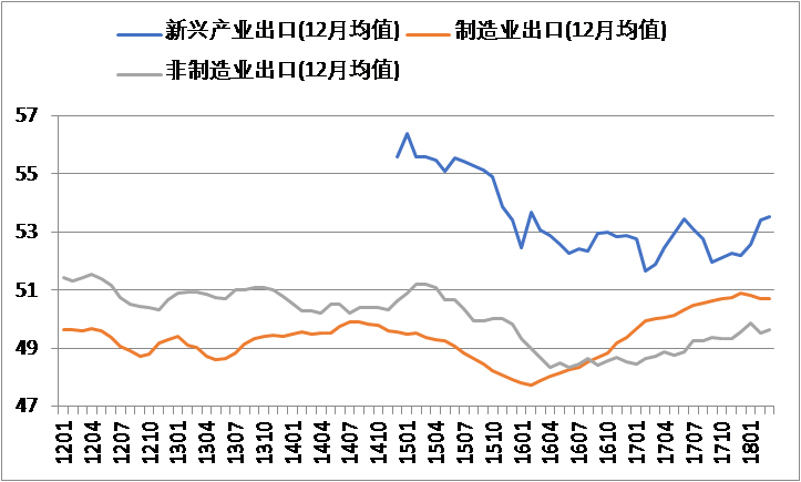 图5:2012年以来新兴产业、制造业和非制造业出口指数情况