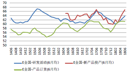 图3: EPMI产品订货、研发活动和新产品投产6月均对比