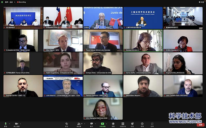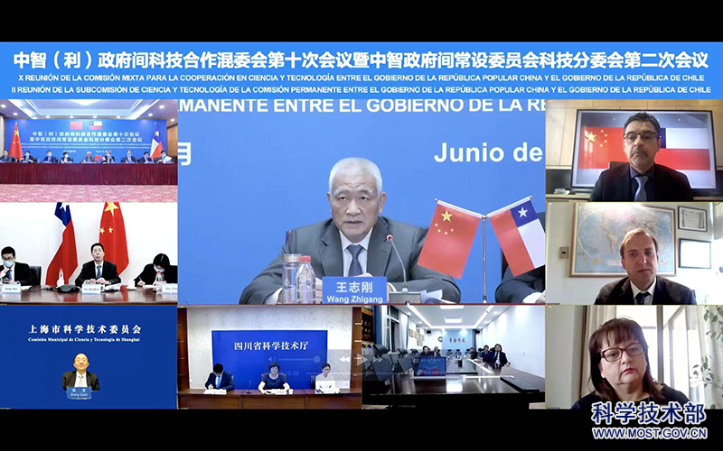 2022年6月17日,中智政府间科技合作混委会第十次会议暨中智政府间常设委员会科技分委会第二次会议以视频方式举行。中国科技部部长王志刚与智利科技、知识与创新部部长弗拉维奥·萨拉萨尔共同召开会议并做主旨讲话,双方有关代表参会发言。