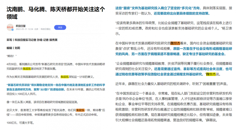 4月30日,看到腾讯公司发布“新基石研究员项目”的消息,中国科学技术发展战略研究院副研究员朱欣乐激动地发了条朋友圈。