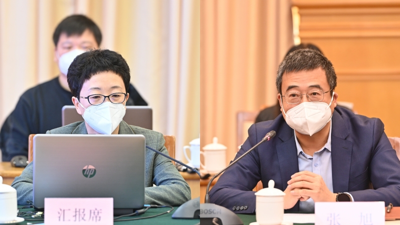 战略院院长张旭致欢迎辞,战略院党委书记刘冬梅汇报《战略院国家高端智库建设试点2022年工作总结和2023年工作思路》。