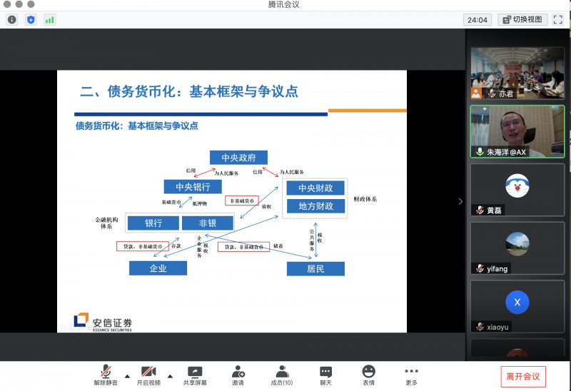8月27日,战略院博士后工作站邀请安信证券研究中心高级分析师朱海洋博士主讲第二十八期学术沙龙,他分享的报告题目为:债务货币化和市场化改革。